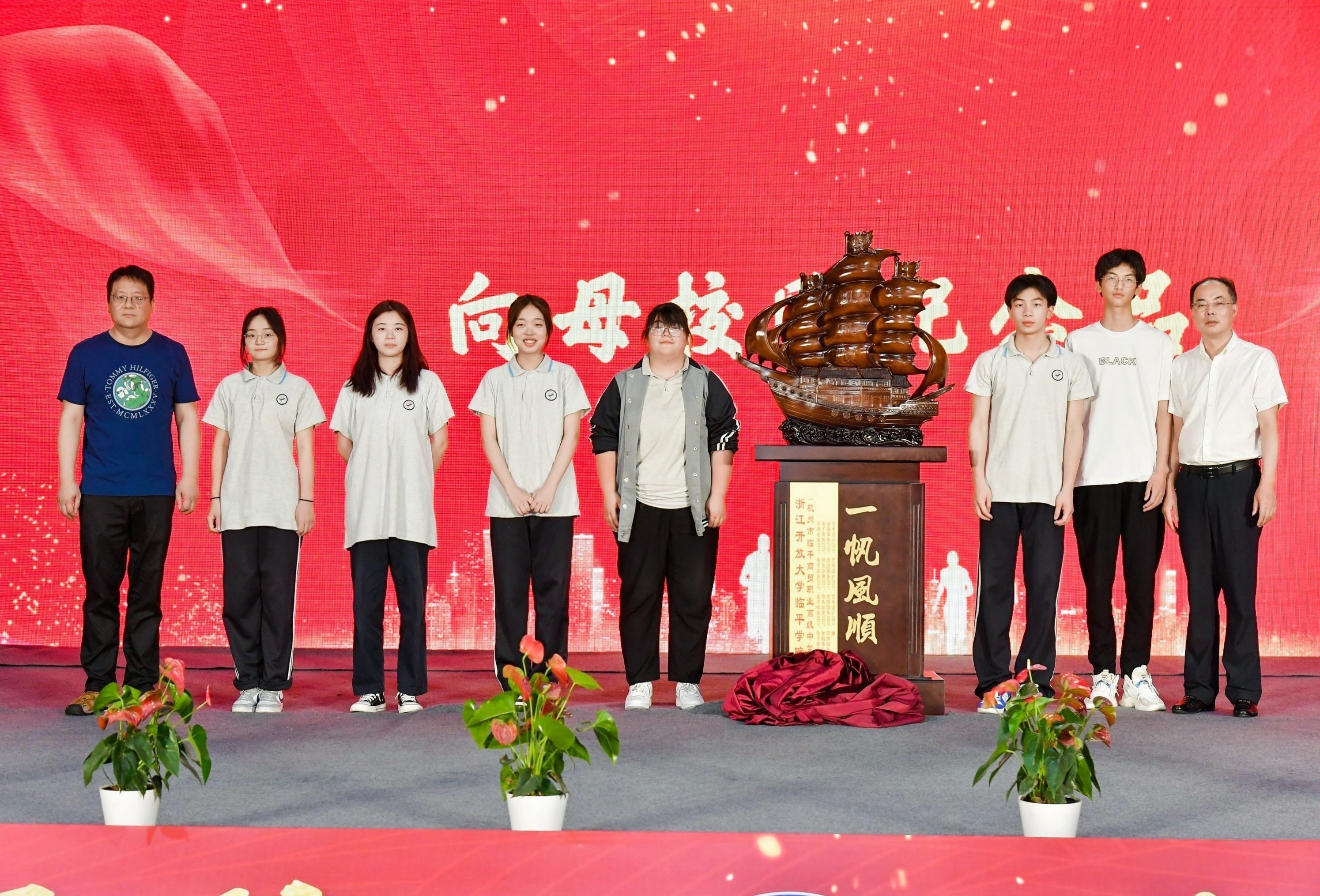 2023屆畢業(yè)生代表向母校贈(zèng)紀(jì)念品,它承載著莘莘學(xué)子對(duì)母校的深深眷戀,也將見(jiàn)證臨平商貿(mào)職高不斷走向新的高度。