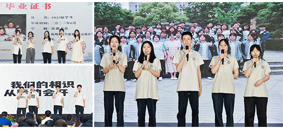 三年來(lái),我們經(jīng)過(guò)磨礪逐漸走向成熟,我們執(zhí)著地朝著自己心中的夢(mèng)想努力,詩(shī)歌朗誦《尋夢(mèng)者》、小組唱《最美的期待》《不說(shuō)再見(jiàn)》,表達(dá)了對(duì)未來(lái)充滿期待。