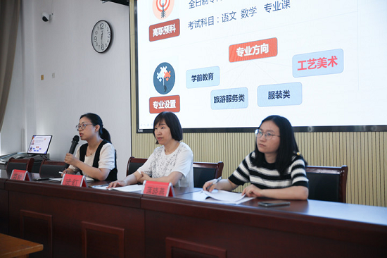 職普融通家長會由副校長武紅、專業部部長裘艷、班主任蔣曉燕及職普班全體家長和新生參加。裘艷介紹了去年職普融通情況、浙江省單獨考試(高職高考)專業分析及考試要求,并介紹了“職高普高化”的專業管理;隨后,武紅介紹職普融通班具體融通辦法,希望同學們充分利用好這個暑假,做好初高中銜接。