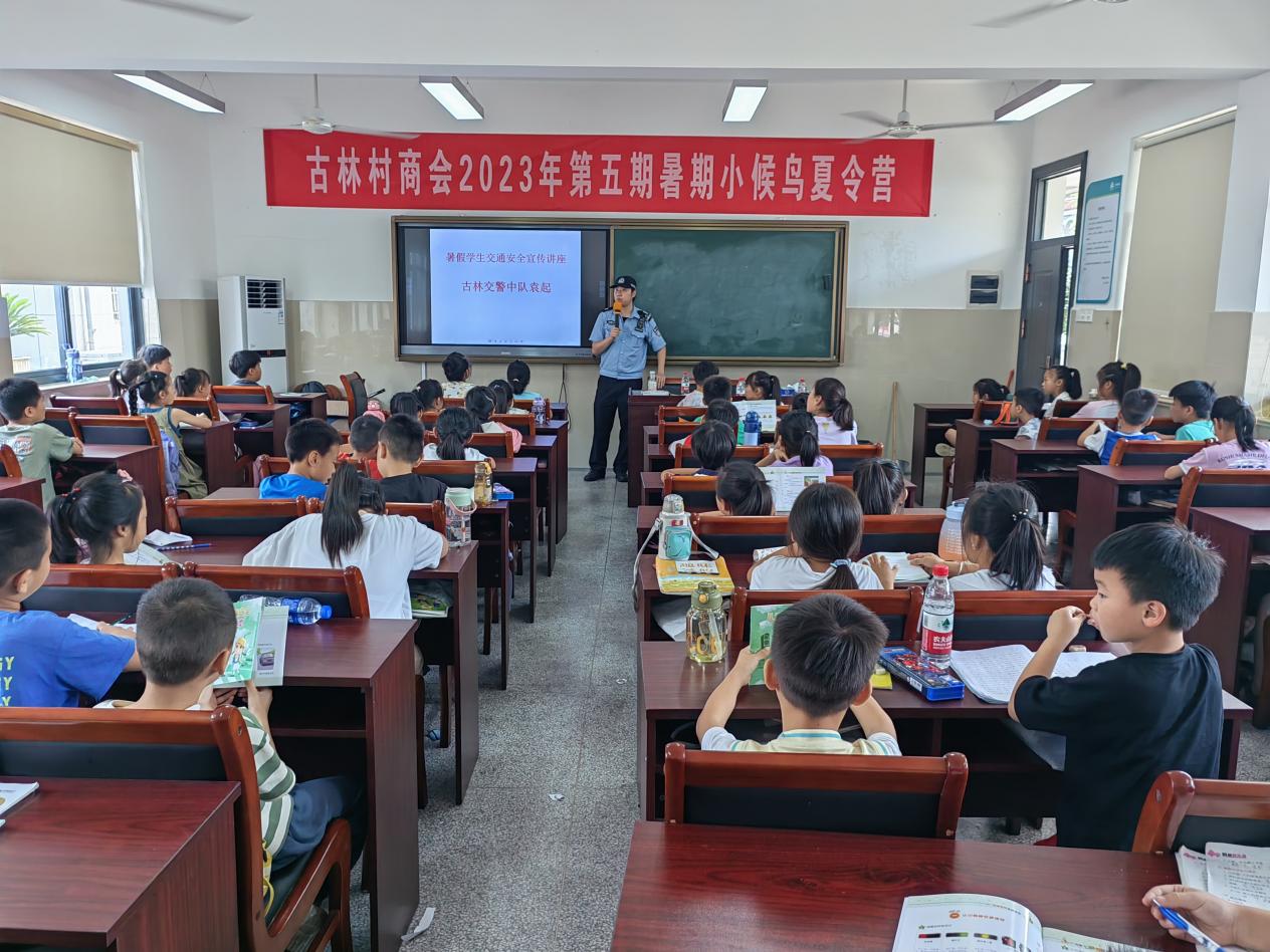 7月13日上午,在海曙區古林成人學校內,古林交警中隊袁起為60余名小候鳥講解交通安全知識,帶領大家看交通知識短片,學習交通手勢,并通過典型事故案例,提醒和告誡孩子們出行應注意的事項。現場氣氛活躍,孩子們爭先恐后地參與互動。