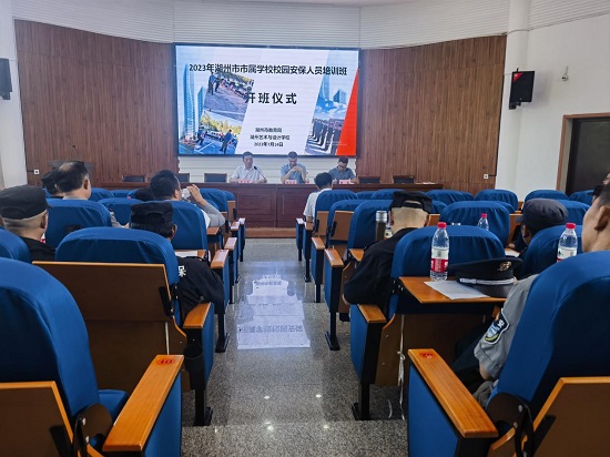 為進一步增強湖州市市屬學校安保人員的安全意識,提升校園安保工作質量,提高校園保安的業務能力,守好校園安全第一道門,7月14日,由湖州市教育局主辦,湖州藝術與設計學校承辦的市屬學校安保人員培訓班在浙江省湖州藝術與設計學校順利開班,來自湖州市市屬學校90余名安保人員參加培訓。湖州市教育局校園安全管理處處長陳金星,湖州藝術與設計學校副校長費永軍、培訓處處長楊燕出席開班儀式,開班儀式由楊燕主持。