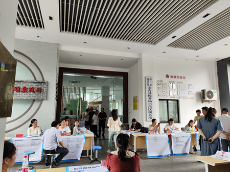 為進(jìn)一步協(xié)助長(zhǎng)三角(湖州)產(chǎn)業(yè)合作區(qū)高質(zhì)量發(fā)展和天子湖鎮(zhèn)黨委政府經(jīng)濟(jì)發(fā)展需求,積極做好應(yīng)屆畢業(yè)生及求職者就業(yè)工作,滿足安吉縣長(zhǎng)合區(qū)工業(yè)園區(qū)企業(yè)單位用工問(wèn)題,實(shí)現(xiàn)企業(yè)人才雙向奔赴。7月29日,安吉社區(qū)教育學(xué)院天子湖分院聯(lián)合鄣吳學(xué)習(xí)中心、天子湖人力社保所在天子湖分院一樓開(kāi)展夏季專場(chǎng)招聘會(huì)。