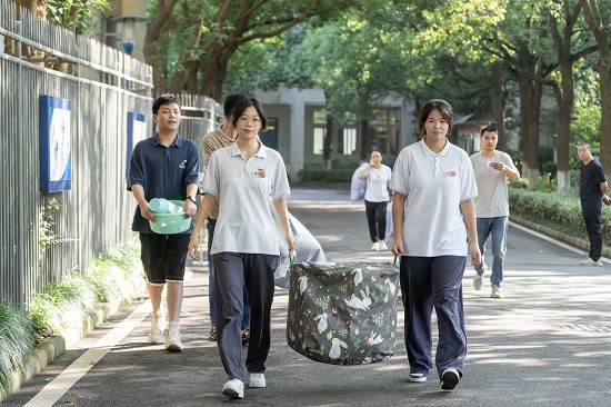 早上7時(shí),校領(lǐng)導(dǎo)、老師和學(xué)生會志愿者便在校園各處等候。校門口,引導(dǎo)組老師熱情迎接新生及家長,為他們指引車輛,幫忙卸下行李。寢室樓內(nèi),學(xué)生會志愿者將新生們大大小小的包裹搬運(yùn)至寢室,讓他們感受到了“拎包入住”的極致體驗(yàn)。教室內(nèi),17個(gè)新生班班主任將班級布置一新,黑板上的歡迎語精致美觀、創(chuàng)意非凡,班主任與新生及家長們親切交談,幫助他們消除陌生感,使新生盡快融入新環(huán)境。