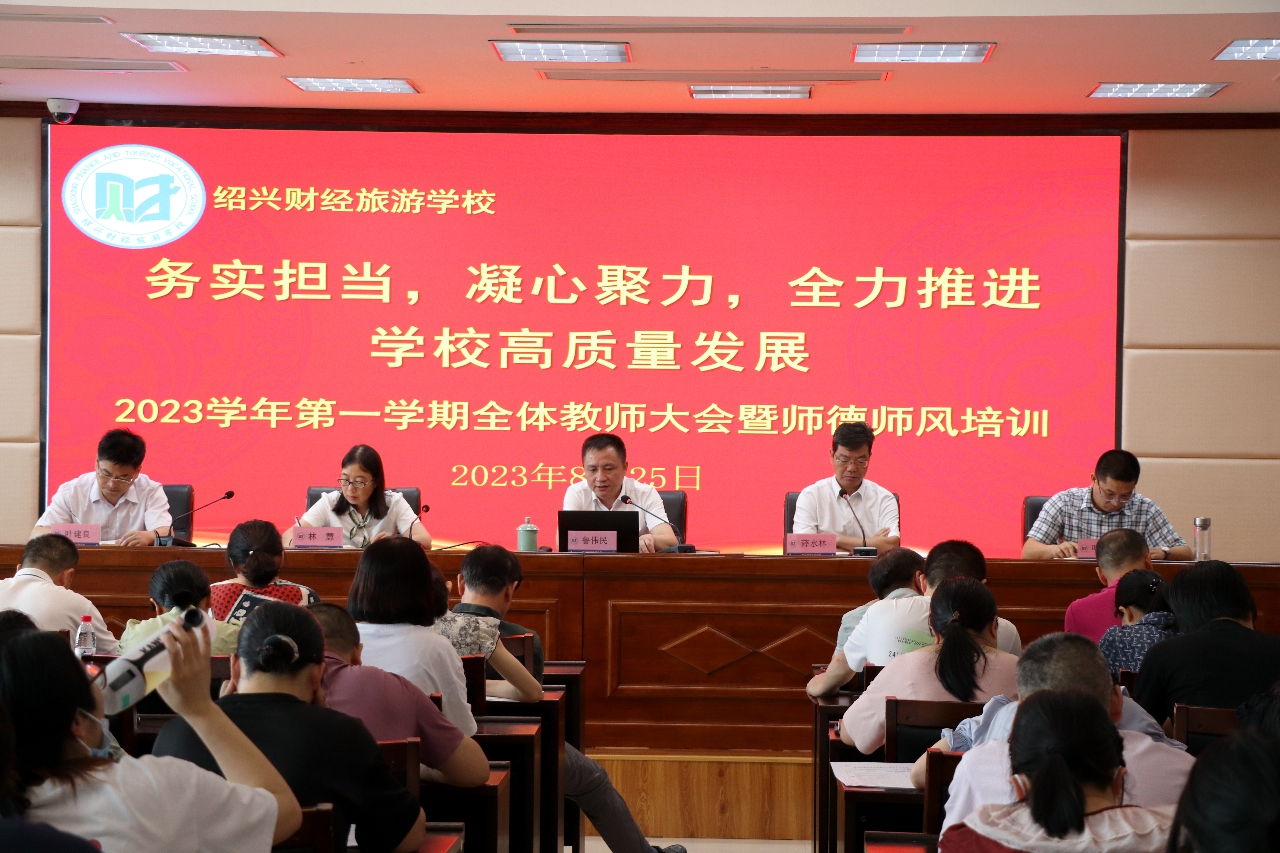 8月25日上午,紹興財經旅游學校召開2023學年第一學期全體教師大會暨師德師風培訓會,大會由校長薛水林主持。