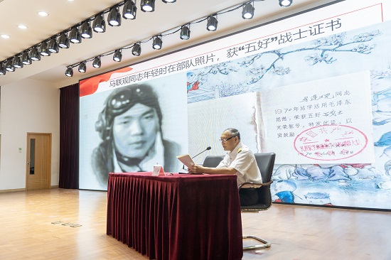 空軍退役老戰(zhàn)士馬聯(lián)觀同志為大家講述《我的飛行員經(jīng)歷》。作為一名空軍飛行員,不僅需要過硬的飛行技術(shù),更要有與天空搏擊的勇氣,前一晚觀看過電影《長空之王》后,同學(xué)們對此有了更深的體會。