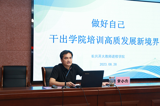 8月28日上午,全體教師認(rèn)真聽取了學(xué)院院長章小杰《做好自己,干出學(xué)院培訓(xùn)高質(zhì)發(fā)展新境界》的專題報告,他強(qiáng)調(diào)在新形勢下,教師要始終以翻篇為零的姿態(tài),做好自己,主動作為,努力為實(shí)現(xiàn)“辦省一流培訓(xùn)學(xué)校”美好愿景、打響“學(xué)在長興”品牌和地方終身教育發(fā)展貢獻(xiàn)力量。