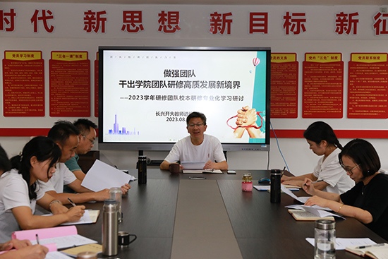 8月30日上午,學(xué)院召開了《做強(qiáng)團(tuán)隊 干出學(xué)院團(tuán)隊研修高質(zhì)發(fā)展新境界》的校本研修團(tuán)隊工作組專題研討,副書記孫甫永主持。