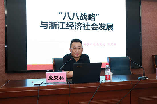 8月29日下午,學(xué)院邀請長興縣委黨校高級講師、經(jīng)濟(jì)教研室主任、湖州市社科聯(lián)宣講團(tuán)成員殷榮林老師宣講了專題《“八八戰(zhàn)略”與浙江經(jīng)濟(jì)社會高質(zhì)量發(fā)展》。殷榮林老師整場講座內(nèi)容豐富,分析透徹,全體教師受益匪淺,也進(jìn)一步了解了“今日浙江、昔日浙江、‘八八戰(zhàn)略’的提出、‘八八戰(zhàn)略’與‘新思想’”等內(nèi)容。