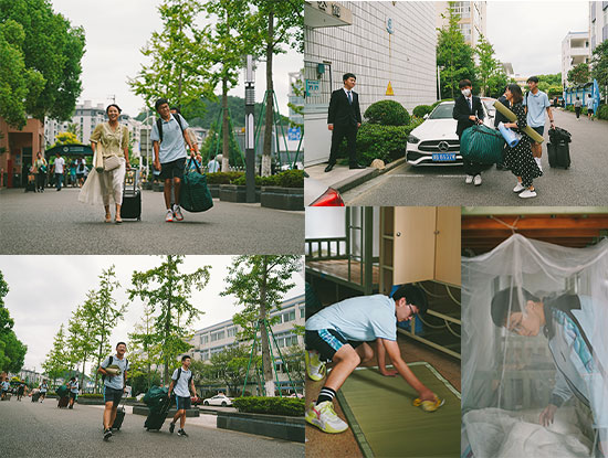 校園里,一家人或提或推著行李箱,共享高中生活開啟的喜悅。附近的家長騎著自行車、電瓶車陪同孩子入校,“今天的天氣涼爽,騎車來既是一項親子早鍛煉,一路還欣賞了東錢湖的風景呢,真是一次獨特的體驗。”一位家長說。