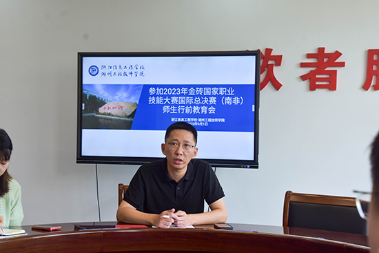 為進一步規范出國(境)師生外事管理,增強師生在國(境)外的安全防范意識,9月1日上午,學校組織開展“2023年金磚國家職業技能大賽國際總決賽(南非)”師生行前教育。校黨委書記、校長崔燕榮,黨委委員、副校長陸婷,工會副主席、校辦副主任孫婷以及赴南非參加國際比賽的師生參加會議。