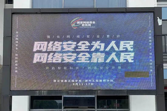 除此之外,學(xué)校還充分發(fā)揮“數(shù)字校園”的傳播優(yōu)勢,普及網(wǎng)絡(luò)安全常識,全面增強(qiáng)師生防范意識。學(xué)校利用校內(nèi)LED大屏滾動播放網(wǎng)絡(luò)安全相關(guān)標(biāo)語及防范技能;通過學(xué)校微信公眾號,宣傳《網(wǎng)絡(luò)安全法》、預(yù)防網(wǎng)絡(luò)詐騙等相關(guān)知識。