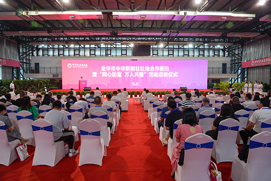 儀式上開展了“同心助富·職教有為”社地合作簽約儀式,武義縣新宅鎮(zhèn)、柳城畬族鎮(zhèn),磐安縣安文街道、新渥街道與金華市職教社共同完成簽約。