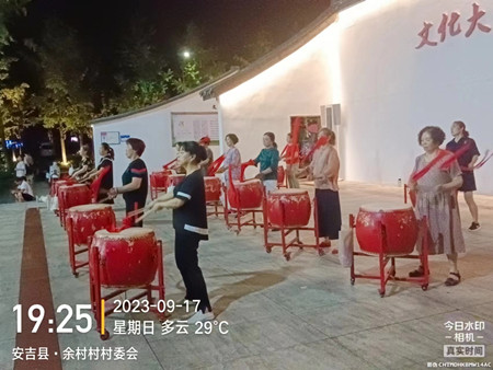 安吉社區(qū)教育學(xué)院天荒坪分院的“兩山大鼓”班自成立以來(lái),人員由最初的十幾位腰鼓愛(ài)好者發(fā)展壯大到正式隊(duì)員三十五人,候補(bǔ)隊(duì)員十幾人,做到每一個(gè)位置都有候補(bǔ)隊(duì)員。平時(shí)她們戰(zhàn)嚴(yán)寒斗酷暑,盡情的揮灑著汗水,就是為了一旦有活動(dòng),隨時(shí)都可以拉出去進(jìn)行表演。八月底接到余村村、山河村、大溪村等村豐收節(jié)組委會(huì)邀請(qǐng),她們?cè)缭缇烷_(kāi)始了準(zhǔn)備,根據(jù)各村需求,重新編排節(jié)目?jī)?nèi)容,邊訓(xùn)練邊修改,以達(dá)到“綠水青山就是金山銀山”為主線(xiàn),同時(shí)充分展示各村的人文景觀和農(nóng)業(yè)特色的目的。