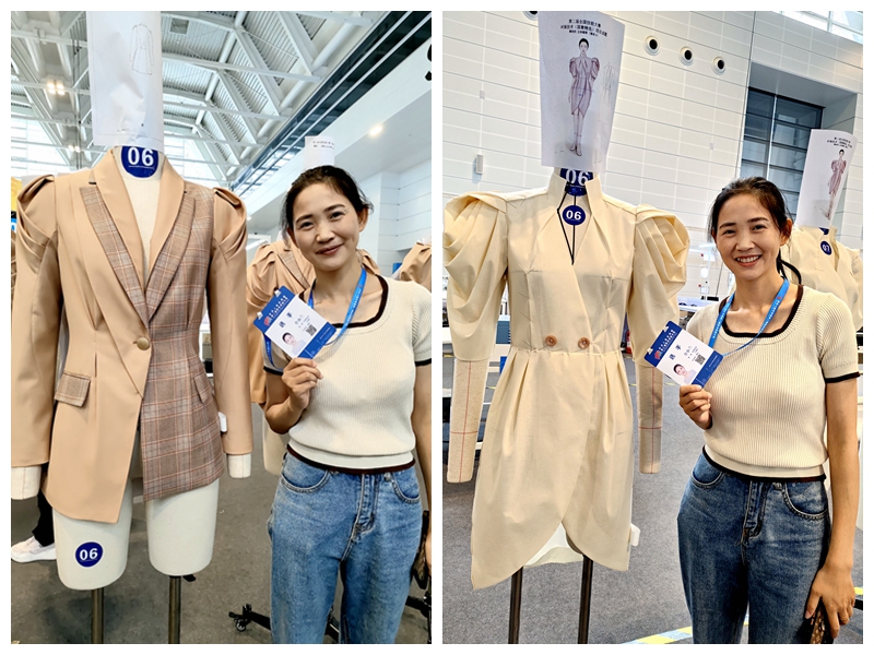 平湖市職業中等專業學校參賽選手全小蘭老師,是一位比賽型老師,在讀書求學期間就參加了第43、44屆的世界技能大賽時裝技術項目獲全國第一名的好成績。為了備戰此次中華人民共和國第二屆職業技能大賽時裝技術國賽精選項目,全老師放棄暑假的休息時間,毅然投身于技能訓練中,因為還在哺乳期,只能帶著剛滿6個月的寶寶一同備戰、參賽,也正是全小蘭老師的這股勇往直前、不服輸的勁頭,才能攻破諸多技術難點,創造新的契機,在29人中脫穎而出,讓我們看到了精湛技藝背后的懷揣匠心、埋頭鉆研。