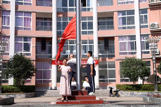 在雄壯的國歌聲中,全體教師、學生莊嚴肅穆,瞻仰國旗,緬懷歷史。