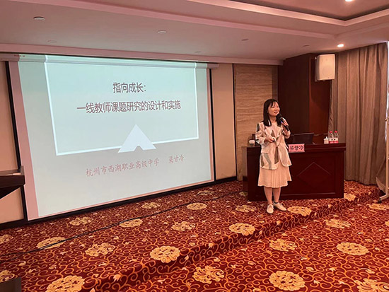 9月22日下午,杭州市西湖職業高級中學教科室主任、正高級講師、杭州市131中青年人才梁甘冷老師帶來《指向成長:一線教師課題研究的設計與實施》講座。梁老師從“為什么我們要做課題?”這一問題出發,結合多年教科研工作經驗,從“選題:研究的價值”“設計:落地的藍圖”“積累:實施的保障”“寫作:思考的工具”四個方面,細致全面地介紹了課題研究的設計與實施過程。梁老師的講座,讓老師們認識到研究應該是規律的發現以及知識創生。