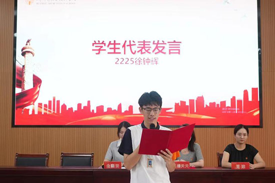 來自2225班的徐鐘輝同學代表入團積極分子發言。徐鐘輝表明要嚴格要求自己,努力成為一名共青團員的決心,同時,他還希望在場所有入團積極分子也都能懷著對黨、團無限的熱愛與崇敬,以極高的熱情和充沛的精力投入到本次業余團校的學習中,嚴格要求,努力奮斗,爭取早日成為一名合格的共青團員!
