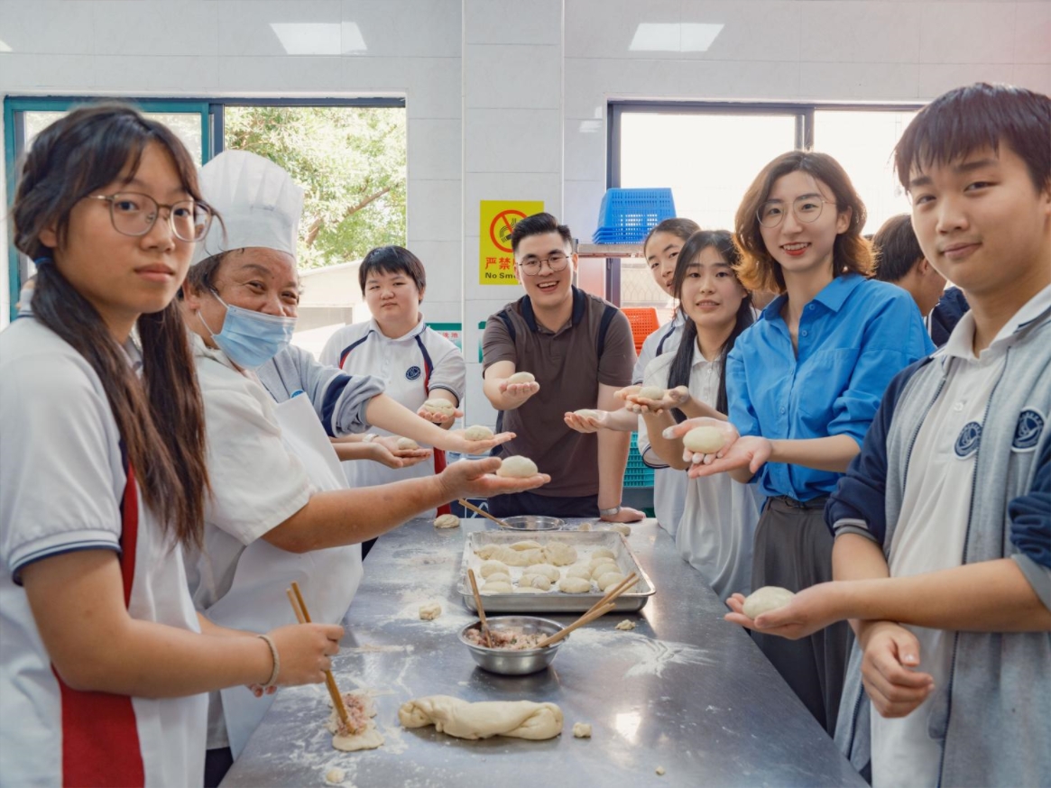 同學們興致高昂,躍躍欲試,把豬肉餡包裹到月餅皮內,再用手捏壓月餅成型……一團團面粉在師生們的巧手下,經過烘焙,變成了一個個香噴噴的鮮肉月餅,讓異地求學的莘莘學子感受到了家的味道。活動期間,來自2208班的俞昕彤同學還為師生獻上了一段越劇才藝表演,將活動氛圍推向了高潮。