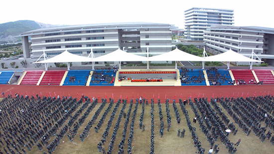匯演結束后,熊邦忠作軍訓總結講話,對本次軍訓成果給予高度評價。他代表學校,向為軍訓付出辛勤汗水的教官們表示衷心的感謝,向敢于吃苦、奮力拼搏,順利完成軍訓任務的全體同學表示熱烈的祝賀,同時勉勵同學們將軍訓的拼搏精神延伸到日后的學習中去,不斷進步,追求卓越,勇攀高峰。