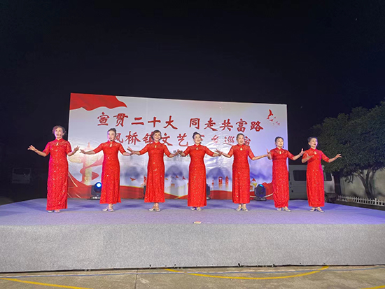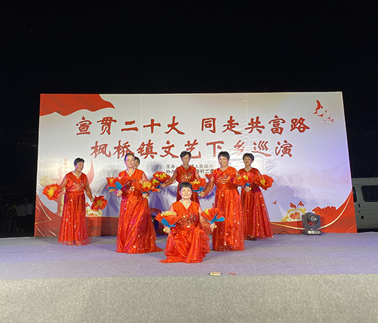 9月25日晚,由楓橋鎮社區教育學校組織的“楓橋鎮‘宣貫二十大 同走共富路’送戲下鄉文藝巡演”在諸暨市楓橋鎮魏廉村象山自然村舉行。