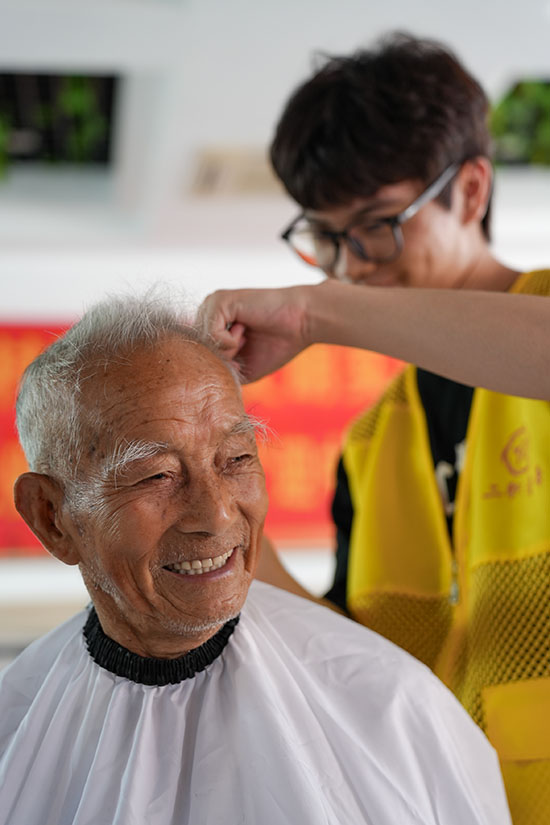 美發(fā)與形象設計專業(yè)的師生們發(fā)揮專業(yè)特長為老人們提供理發(fā)服務。他們根據(jù)老人的發(fā)型要求進行操作,很快,一個個清爽的發(fā)型便呈現(xiàn)在人們眼前。期間,志愿者還和老人們聊聊家常,聆聽他們生活中的小故事,不時地囑咐老人家注意身體,祝福他們健康長壽,溫暖的善舉,讓村里的老人臉上洋溢著幸福的笑容。理發(fā)雖然是一件小事,但是有些老人由于行動不便,也變成了他們的一件難事,本次活動解決了他們理發(fā)難的問題。