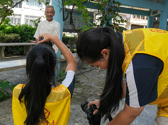 為了給老人們拍出優(yōu)質(zhì)的照片,數(shù)字影像技術專業(yè)的志愿者們攙扶著老人們來到環(huán)境較好的拍攝地點,親自示范,引導老人們擺造型。有的老人年齡大了,聽力不好,志愿者們就彎腰俯身,湊近老人的耳邊反復溝通,有時候,一句話要重復多次。遇到不會講普通話的老人,志愿者們就安排會說溫州話的同學進行溝通,整個拍攝過程其樂融融,輕松溫馨?;顒赢斕?,數(shù)字影像技術專業(yè)的同學們?yōu)榇謇锏?0多位老人拍攝了生活照和藝術照,還為90歲以上的老人拍攝了肖像照,得到了大家的一致肯定。
