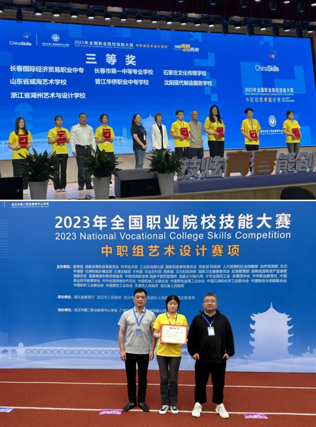 9月19日—9月22日,2023年全國職業(yè)院校技能大賽中職藝術設計賽項在武漢市第二職業(yè)教育中心學校舉行。浙江省湖州藝術與設計學校團隊(選手:楊欣怡,輔導老師:張曉輝,協(xié)助:楊婧,領隊:費永軍副校長)赴武漢參加比賽。此次比賽共有來自全國各省市自治區(qū)、計劃單列市的73支參賽隊,藝校選手楊欣怡突破重重困難榮獲三等獎,這也是藝校在職業(yè)技能大賽數年蟄伏后的首次亮相。