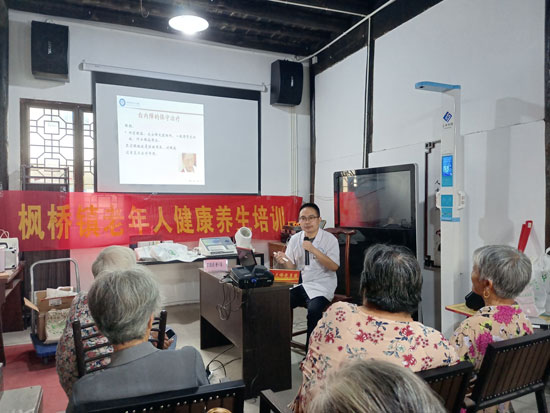 9月28日下午,諸暨市楓橋鎮社區教育學校邀請諸暨市第二人民醫院眼科專家陳旭鋒主任醫師來到楓橋鎮杜黃新村愛心食堂,給老年人帶來養生保健知識。
