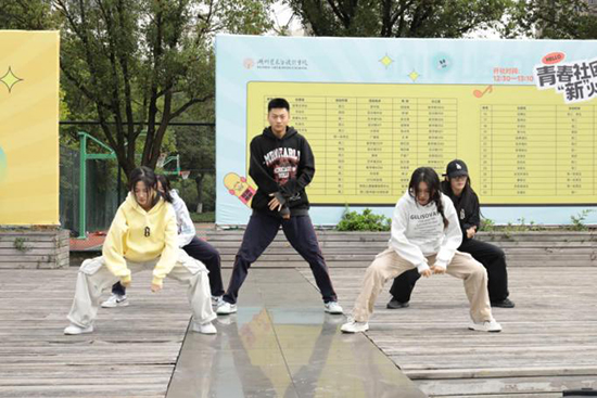 舞出個(gè)性展現(xiàn)自我,街舞社在學(xué)舞練舞的過程中讓同學(xué)們的才能得到充分發(fā)揮。