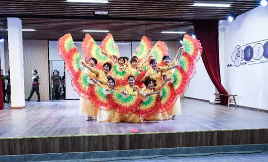 諸暨市楓橋鎮(zhèn)楓之韻藝術(shù)團(tuán)表演的舞蹈《盛世歡歌》首先登場,大紅喜慶的服裝、整齊劃一的動作、充滿激情的音樂,調(diào)動起歡樂的氛圍。楓一村腰鼓隊演員們身著紅裝、腰掛腰鼓,威武地站在臺上,鏗鏘的鼓點敲起來,大家跳躍著、打擊著,隆隆,隆隆,激昂的旋律,振奮人心,震耳欲聾的鼓點展示了人們對現(xiàn)有美好生活的自信與信心,聽鼓點完全分辨不出這竟然來自一位位農(nóng)村大媽之手。楓橋鎮(zhèn)楓之韻藝術(shù)團(tuán)表演的舞蹈《瀟灑女兵》,颯爽的英姿、端莊的儀容、堅定的步伐贏得掌聲陣陣。越劇、歌曲、廣場舞、獨(dú)舞、雙人舞等節(jié)目帶給觀眾一場歡樂歌舞的盛會。晚會在全體演員大合唱《我和我的祖國》中結(jié)束。
