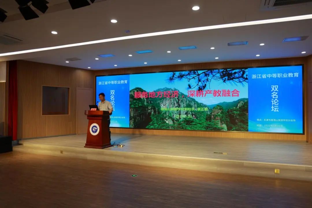 緊接著,樂清市雁蕩山旅游學(xué)校蔡正敏副校長(zhǎng)作了題為《服務(wù)地方經(jīng)濟(jì),深耕產(chǎn)教融合》的發(fā)言,他結(jié)合雁旅校企合作的特色項(xiàng)目:節(jié)假日勤工儉學(xué)、實(shí)習(xí)數(shù)字化管理、現(xiàn)代學(xué)徒制探索、教師掛職鍛煉、企業(yè)文化宣講等通過圖文并茂的形式進(jìn)行了闡述。
