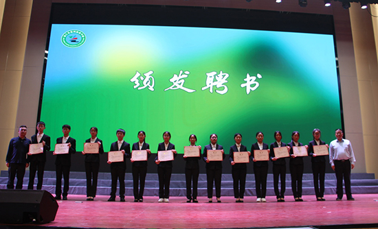 儀式上,校領(lǐng)導(dǎo)們?yōu)閷?dǎo)游隊(duì)成員頒發(fā)聘書。