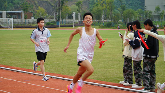 4×100米接力現場,怎么只有一個運動員在跑?因為對手已經被他甩出屏幕畫面之外了!這就是2102班打破紀錄的最后一棒!