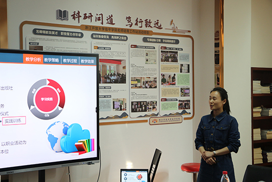 浙江開放大學臨平學院(臨平商貿職高)副院長查文婷,以“乘勢而凝‘荷’力,聚勢而強‘匠’心”為主題,對學校專業建設情況展開介紹。