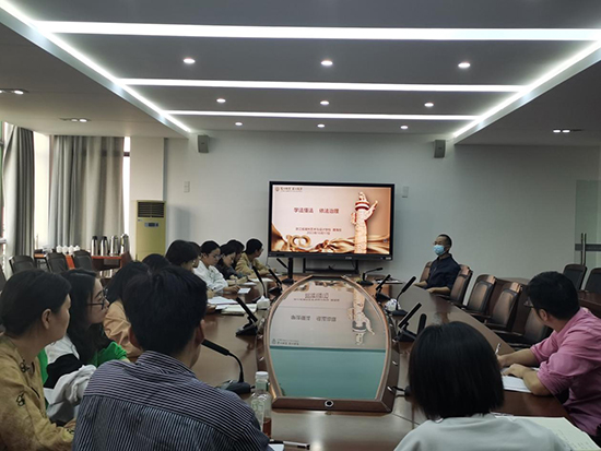 為持續(xù)推進(jìn)學(xué)校后備青年干部“明德守法 完善自我”專項(xiàng)行動(dòng),10月17日,浙江省湖州藝術(shù)與設(shè)計(jì)學(xué)校第一期“菁藝計(jì)劃”培訓(xùn)班第7次集中培訓(xùn)在1號(hào)會(huì)議室召開。校黨委書記唐海佺以《學(xué)法懂法 依法治理》為題做講座,15名學(xué)員參加培訓(xùn)。