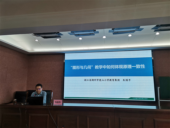培訓(xùn)期間,浙江省特級教師、正高級教師朱國平作主題為《圖形與幾何如何體現(xiàn)原理一致性》的專題講座,他從“原理的一致性、內(nèi)容的整體性、學(xué)習(xí)的階段性”“結(jié)構(gòu)化單元整體教學(xué)的價(jià)值取向與操作支架”“結(jié)構(gòu)化單元整體教學(xué)的實(shí)施策略”等方面展開,幫助參訓(xùn)教師整體把握教材,弄清了新課標(biāo)下圖形與幾何領(lǐng)域單元整體導(dǎo)學(xué)的內(nèi)涵。長興縣教育研究中心小學(xué)數(shù)學(xué)教研員楊明嵐作主題為《圖形與幾何領(lǐng)域大單元鏈?zhǔn)浇虒W(xué)的實(shí)踐》專題講座,從“圖形與幾何領(lǐng)域大觀念”“圖形認(rèn)識板塊課例實(shí)踐”“圖形測量板塊課例實(shí)踐”三方面展開,結(jié)合參訓(xùn)教師熟悉的課例一一進(jìn)行講解,讓參訓(xùn)教師對如何去提煉板塊核心概念并進(jìn)行大單元的鏈?zhǔn)竭M(jìn)階有了更深入的理解。兩位專家對新課標(biāo)下圖形與幾何領(lǐng)域單元整體的解讀和分析,讓參訓(xùn)教師進(jìn)一步明確了教學(xué)方向。