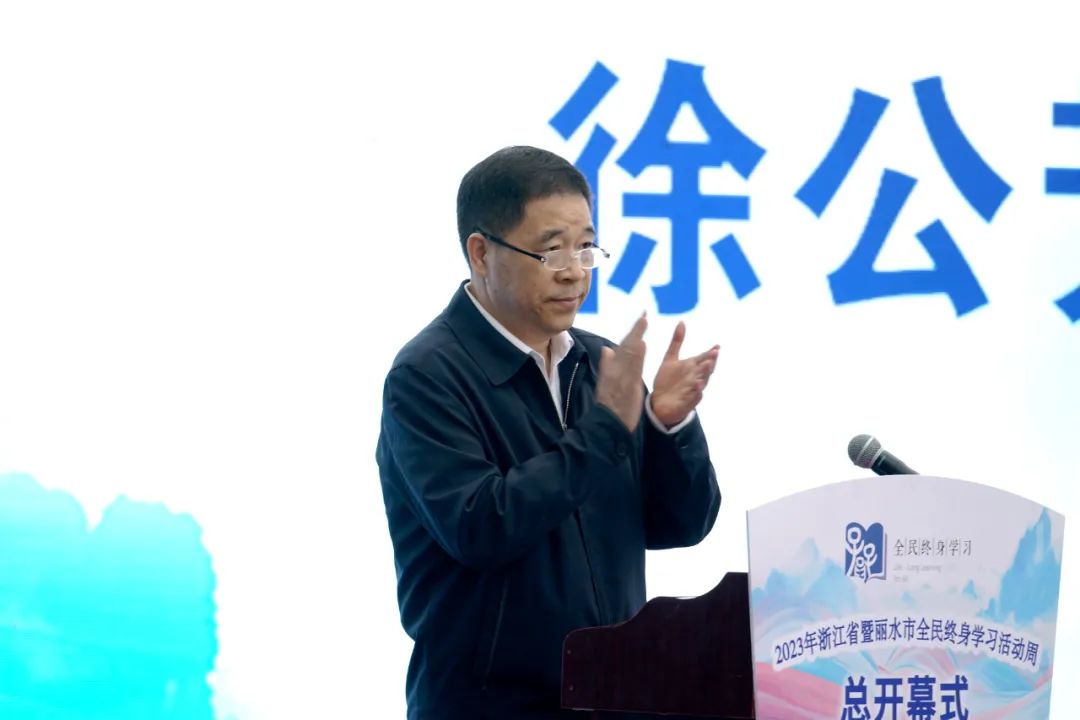 10月26日上午,以“讓學習成為一種生活方式”為主題的2023年浙江省暨麗水市全民終身學習活動周總開幕式在市圖書館舉行。省教育廳黨組成員、副廳長陳峰,市人民政府副市長盧彩柳出席并講話。浙江開放大學黨委副書記、校長王正東,浙江開放大學黨委委員、副校長張吉先出席。中國成人教育協會副會長徐公芳出席并講話。