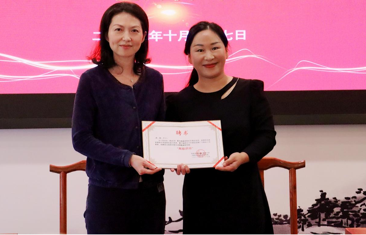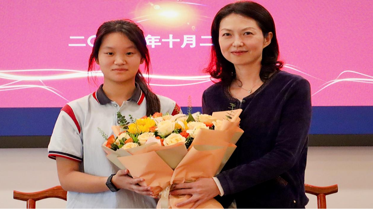 協(xié)議簽署完畢后,包胡校長(zhǎng)頒發(fā)了“名譽(yù)校友”榮譽(yù)證書(shū)和中職生動(dòng)商教育研究院“高級(jí)講師”聘書(shū),閑林職高女子手球隊(duì)隊(duì)長(zhǎng)徐敏蕊代表全隊(duì)獻(xiàn)上鮮花。