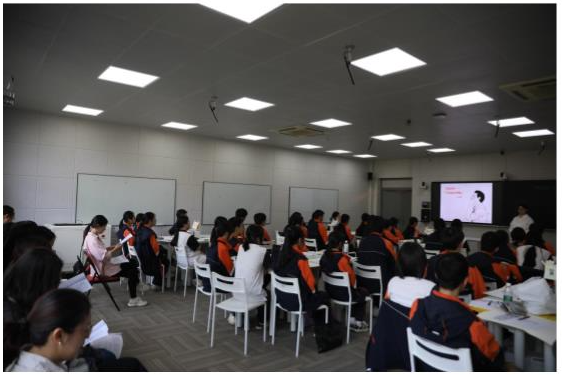 來訪班主任老師與學校王樓天天班主任工作室成員進行了深入交流。學生處處長費曉旦介紹了學校德育工作和近年來班主任能力大賽成績,班主任工作室負責人王樓天天做了題為《苔花如米小,也學牡丹開》的班主任工作報告,分享了自己帶班11年的優秀經驗,沈晨怡老師進行了班主任能力大賽的備賽經驗分享。隨后,兩校班主任老師們在報告廳聆聽了湖州三院專家醫生王斕帶來的專題講座《青少年心理問題識別》。王斕醫生講解了青少年的九種心理問題,并結合具體案例介紹了詳細的解決方法,使老師們對青少年心理問題具有一定的識別能力,幫助老師們能更從容地處理。