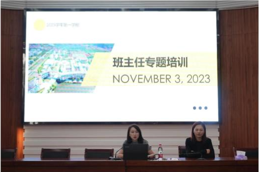 11月3日下午,浙江省湖州藝術(shù)與設(shè)計(jì)學(xué)校在報(bào)告廳舉辦主題為“青少年心理問題識(shí)別”的專題培訓(xùn),湖州市第三人民醫(yī)院社會(huì)心理服務(wù)科副科長、南太湖心航熱線中心線下咨詢中心負(fù)責(zé)人王斕醫(yī)生受邀講座。學(xué)校全體班主任及來自縉云縣工藝美術(shù)學(xué)校的領(lǐng)導(dǎo)及班主任代表參加講座,學(xué)生處副處長王樓天天主持專題講座。