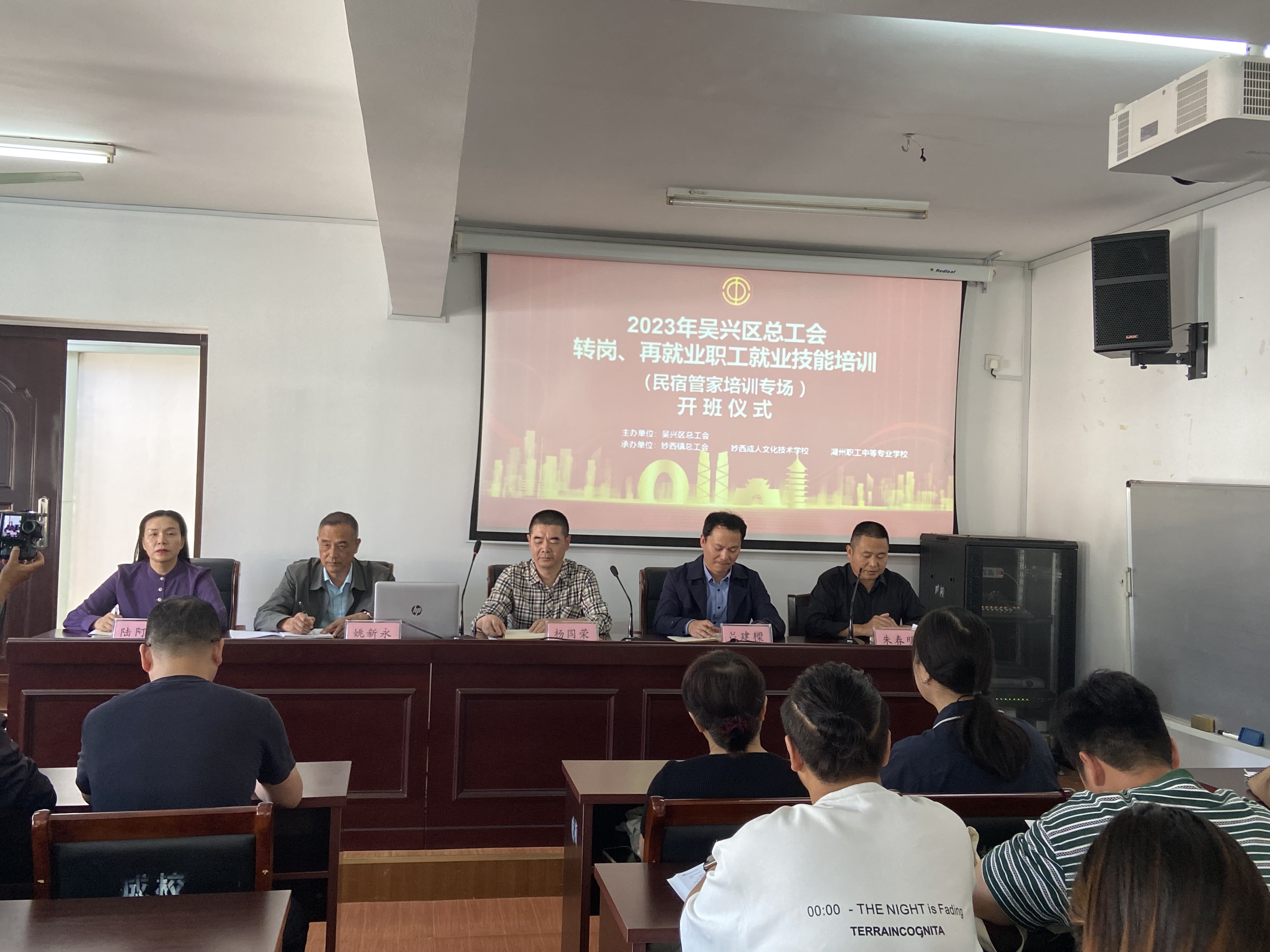 開(kāi)班典禮由妙西成人文化技術(shù)學(xué)校校長(zhǎng)朱春明主持,吳興區(qū)總工會(huì)黨組成員、副主席楊國(guó)榮,西塞山度假區(qū)黨工委委員、管委會(huì)專(zhuān)職副主任呂建樑,妙西鎮(zhèn)總工會(huì)主席姚新永,湖州職工中等專(zhuān)業(yè)學(xué)校校長(zhǎng)陸阿林等出席典禮,來(lái)自妙西鎮(zhèn)及周邊地區(qū)的近50位民宿行業(yè)的管理和服務(wù)人員參加培訓(xùn)。