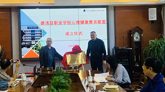 會上,潘云祥和德清職業(yè)中專副校長呂夢非共同為德清縣職業(yè)學(xué)校心理健康教育聯(lián)盟成立揭牌。羅書洋為該聯(lián)盟負責(zé)人崔明敏老師頒發(fā)聘書。崔明敏老師作表態(tài)發(fā)言。