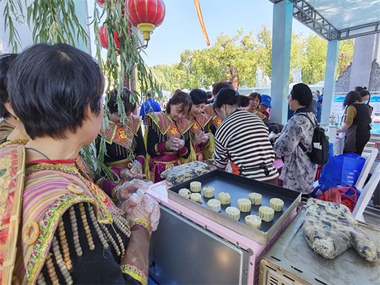 學(xué)校組織的手工月餅體驗活動在現(xiàn)場眾多的體驗項目中脫穎而出,受到了廣大百姓的歡迎。(何吉豐)