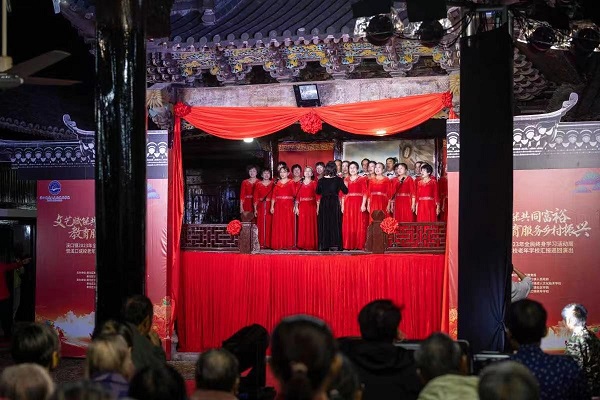來自溪口鎮老年學校的100多位老年學員們,為溪口鎮偏遠山區中的五林村、康嶺村、三石村的村民們熱情獻藝,演出內容豐富,涵蓋合唱、越劇、舞蹈、器樂演奏、太極、模特走秀等內容,贏得各村村民們的陣陣掌聲、連連贊嘆。本次活動周旨在傳播終身學習理念,營造 “時時、處處、人人”皆學的全民學習社會氛圍,不斷強化終身學習意識,共享美好幸福生活。