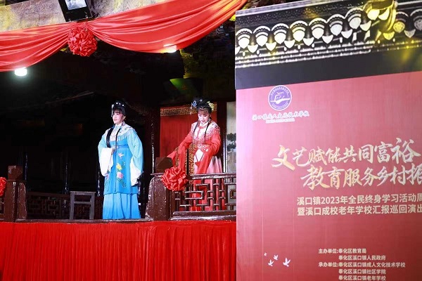 11月6日,“文藝賦能共同富裕 教育服務鄉村振興”溪口鎮2023年全民終身學習活動周暨溪口成校老年學校匯報巡回演出拉開序幕。本次活動周旨在傳播終身學習理念,營造 “時時、處處、人人”皆學的全民學習社會氛圍,不斷強化終身學習意識,共享美好幸福生活。