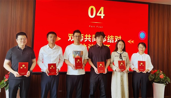 企業(yè)技術(shù)骨干和學(xué)校骨干教師簽署雙師共同體結(jié)對(duì)協(xié)議,開(kāi)啟“共建共融、互幫互助”的建設(shè)之路。