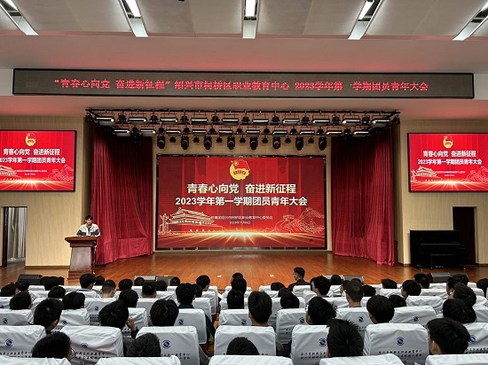 為深入學(xué)習(xí)貫徹習(xí)近平總書記關(guān)于主題教育系列重要講話精神和重要指示批示精神,深入學(xué)習(xí)習(xí)近平總書記在浙江考察時的重要講話精神,牢牢把握動員引領(lǐng)廣大團員和青年認真學(xué)習(xí)領(lǐng)會習(xí)近平新時代中國特色社會主義思想這一根本任務(wù),近日,紹興市柯橋區(qū)職業(yè)教育中心團委在學(xué)校報告廳隆重舉行“青春心向黨 奮進新征程”2023學(xué)年第一學(xué)期全體團員青年大會。校黨委書記鐘建康、副校長繆偉亮、校團委書記蔣瑩潔、專職團干張利娟以及各學(xué)院團總支書記出席了此次會議。