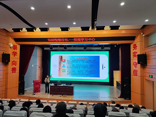 季艷茹以“玩轉智能手機”為題,通過手機投屏的方式,給老人們演示了微信表情包查找運用,“糖豆、下廚房美食、快速問醫生、美圖秀秀、掌上公交”等app的安裝與操作。培訓中,老人們個個興趣高漲,不時向季老師詢問操作時遇到的問題,季老師耐心反復地講解,直到老人們完全掌握操作步驟。