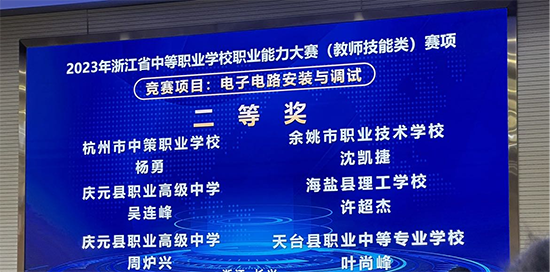 11月26日,由浙江省教育廳舉辦的2023年浙江省中等職業(yè)能力大賽(教師技能類)“電子電路安裝與調(diào)試”賽項比賽落下帷幕。海鹽縣理工學(xué)校青年教師許超杰榮獲省二等獎的優(yōu)異成績。
