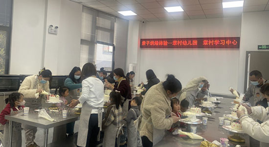 為增進親子關(guān)系,培養(yǎng)孩子的動手能力,提高孩子的溝通能力,12月1日下午,安吉縣社區(qū)教育學(xué)院章村學(xué)習(xí)中心組織章村幼兒園的20對親子在孝豐成校烘焙室開展了“蛋糕烘焙”樂享親子時光活動,讓家長與孩子享受一起制作蛋糕的美好時光。